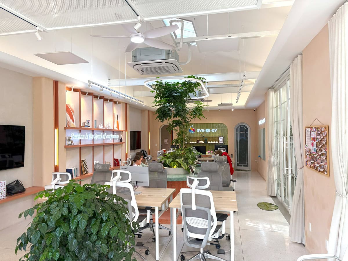 ダナンのワンフロアの路面店で運営するコワーキングスペース。